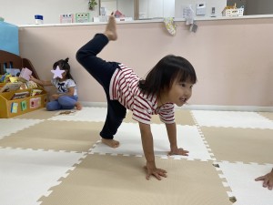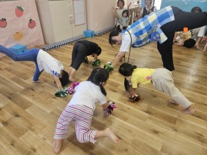 「♪あぱつ・あぱつ…」と歌いながら軽快に踊るりんご組は広い保育室内を自由気ままにダンス☆ダンス☆ダンス☆