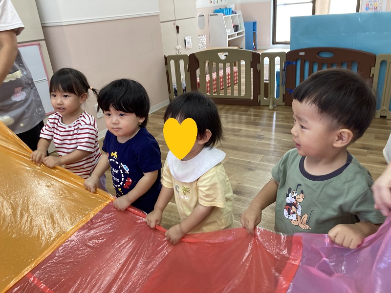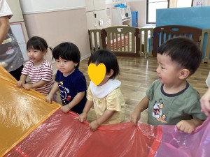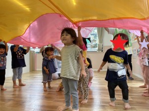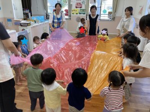 全クラスの子ども達、そして全保育者とで笑顔がいっぱいでパラバルーンを楽しみ、終了しました。