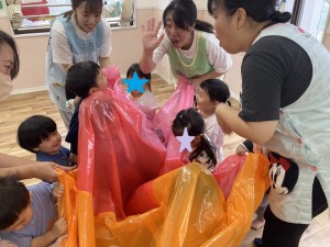 自信満々にお客様の前で踊る子どももいて、子ども達が今、保育園で活動している遊び(ブーム)を出し切っているようでした。