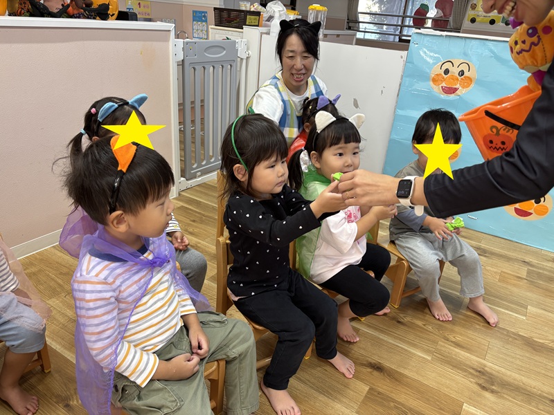 保育室の飾りがハロウィンになった日からずっと楽しみにしていたハロウィン!子どもたちの笑顔が沢山みられてよかったです☺
