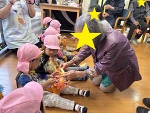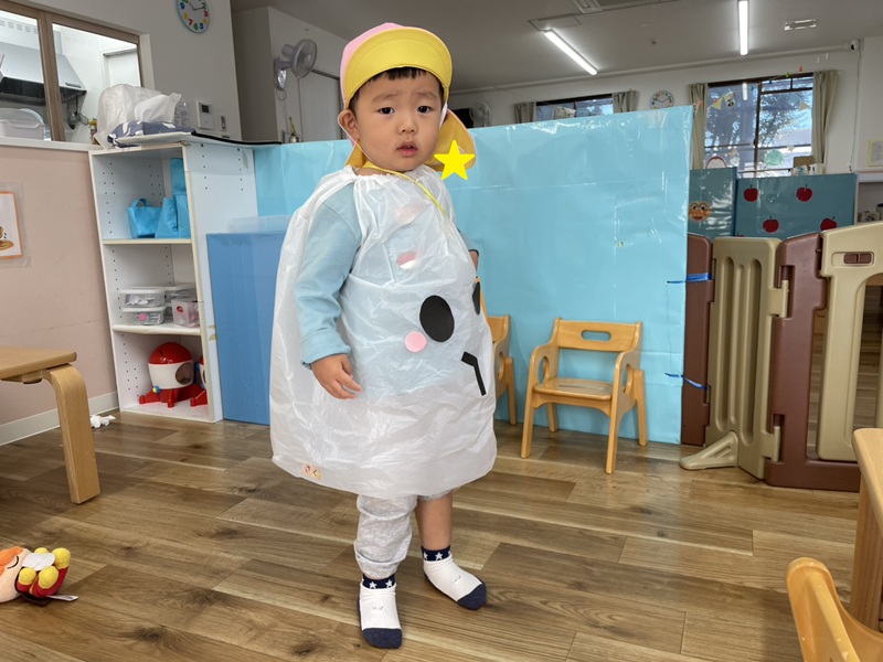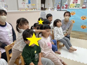 おおかみおとこやフランケンが出てきましたが、可愛いニコニコ笑顔だったので子どもたちも「コンコンコン!」と一緒に掛け声を言いながら楽しんでくれていました♪