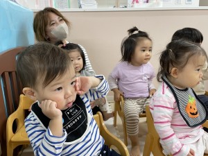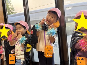 いざ、施設に入るとたくさんの方で出迎えてもらい。驚きで泣いてしまう子もいましたが、施設の方がハロウィンを装飾を付けてくださったり子どもたちが喜んでくれるようにと、アンパンマンのお歌を掛けてくださり子どもたちも少しずつ雰囲気に慣れてくれていました☺