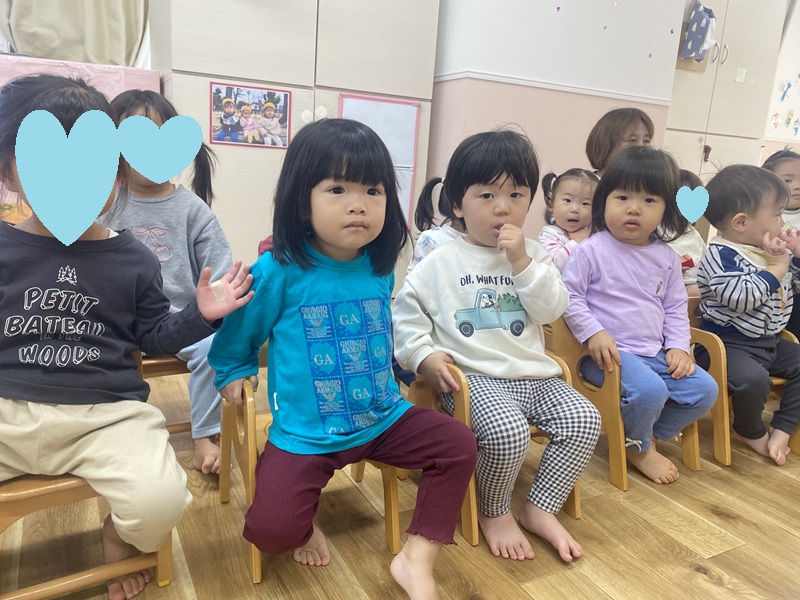 次に、「お芋ほりに行く季節の秋だと思うお友だちー!」と聞くと、たくさんの手が上がりました。