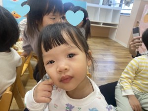 「きいろ!」、「大きいの」などと個々にお話しながら、気に入った1枚を手に取り、思い思いの場所に貼ってくれましたよ♪