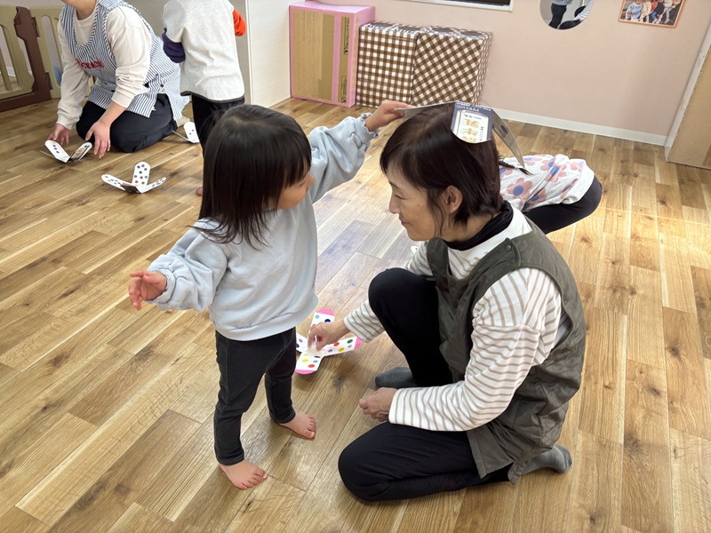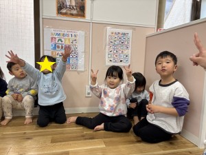その後はお正月の手遊び!「グーチョキパーでなにつくろう?」のお正月バージョンで子どもたちもすぐに真似してやってくれていましたよ!