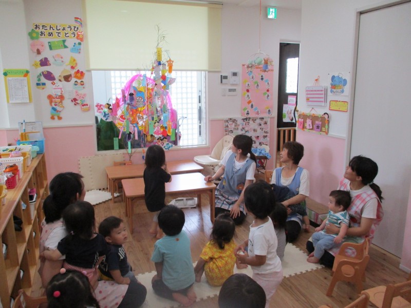 その後、たなばたの歌を皆で歌い、手をキラキラとさせたり、体を揺らしたりと思い思いの表現で楽しんでいました。