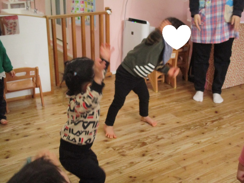 ♪変身ベルトは子どもたちの大好きな体操のひとつで、色々な動物に変身したり、決めポーズがポイントの体操です。