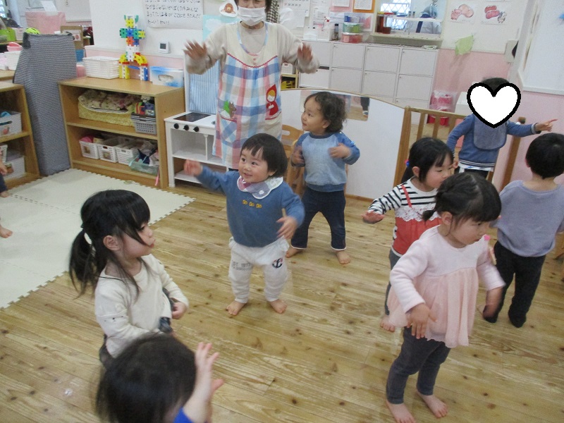 不思議そうな顔やびっくりして泣いてしまうお友だちもいましたが、みんなでリズムに合わせて楽しく踊りました♪