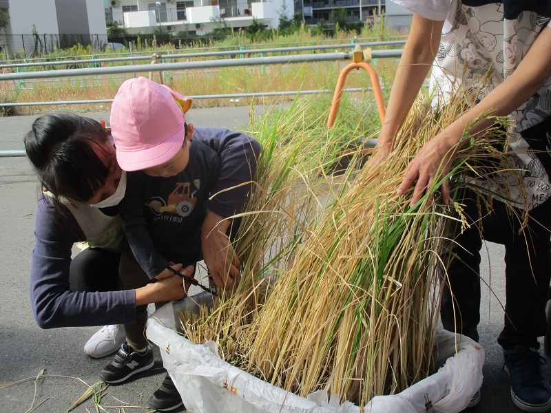 刈った稲穂を手に持ち嬉しそうに先生やお友だちに見せていた子どもたちでした!