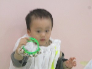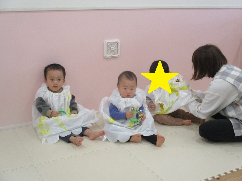 いちご組は「やさいのうた」に合わせ鈴を鳴らし、