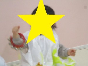 りんご組は「雪のペンキやさん」の歌に合わせカスタネットを鳴らしました。