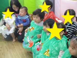 サンタクロースとトナカイの登場に驚き泣いてしまう子や固まってしまう子、喜ぶ子と反応は様々でしたが、「どこから来たの?」「何しに来てくれたの??」など、質問をしたりお話をしている間に子ども達も笑顔になっていました\(^o^)/