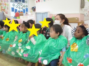 お楽しみクリスマス会 ➁ 発表が終わり、お話をしたり「あわてんぼうのサンタクロース」の歌を歌っていると