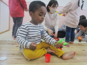 サンタさんとトナカイさんと「お友だちと仲良く遊ぼうね」と