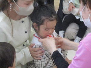 新入のお友だちは少し恥ずかしそうにしながらも、受け取ってくれました♪