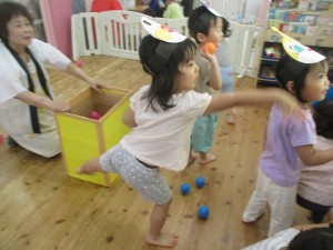 普段からボール遊びが大好きなみんなは、今日も「きゃー!!」「それーっ!!」と楽しそうな声でいっぱいでした♪