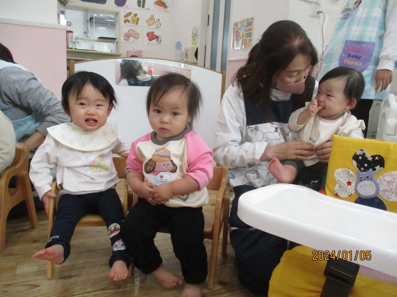 この日はお休みの子どもも多く10人の子どもたちと先生たちでお祝い会をしました。