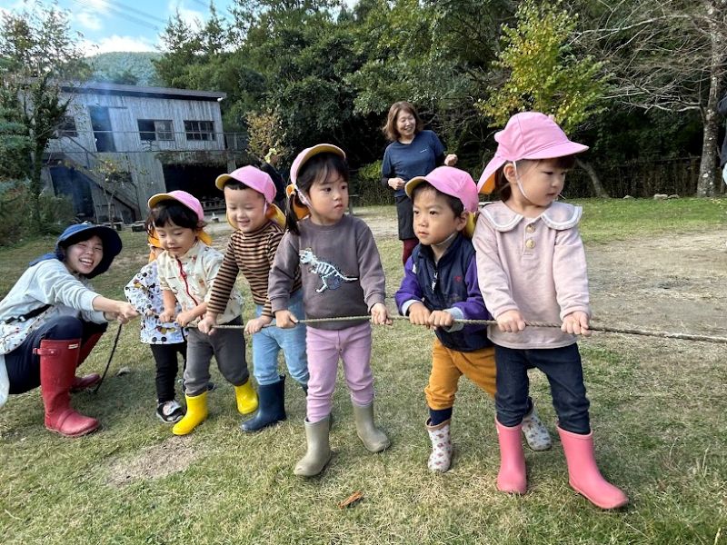 その後、なないろスマイル三津屋園のりんご組さんとも一緒に綱引きや農園散策、ブランコや砂場で遊びました。