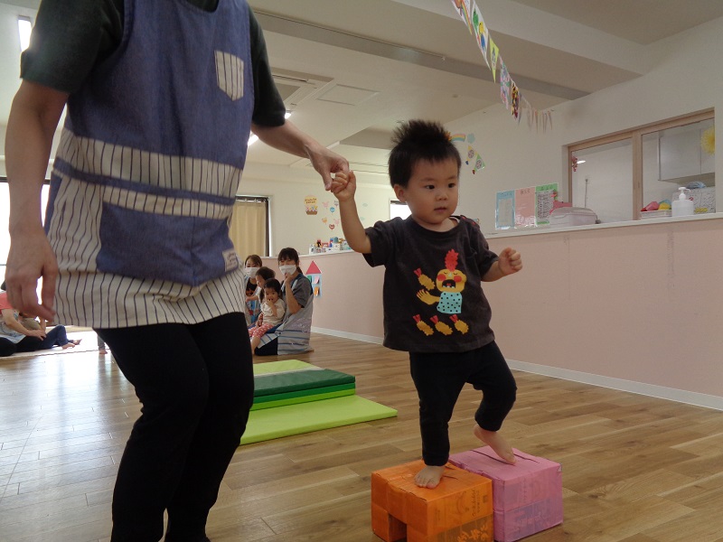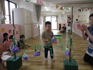 はらぺこあおむしを題材にトンネルをくぐったり、あおむしになって進んだり、最後にはちょうちょになって飛んでいきます!