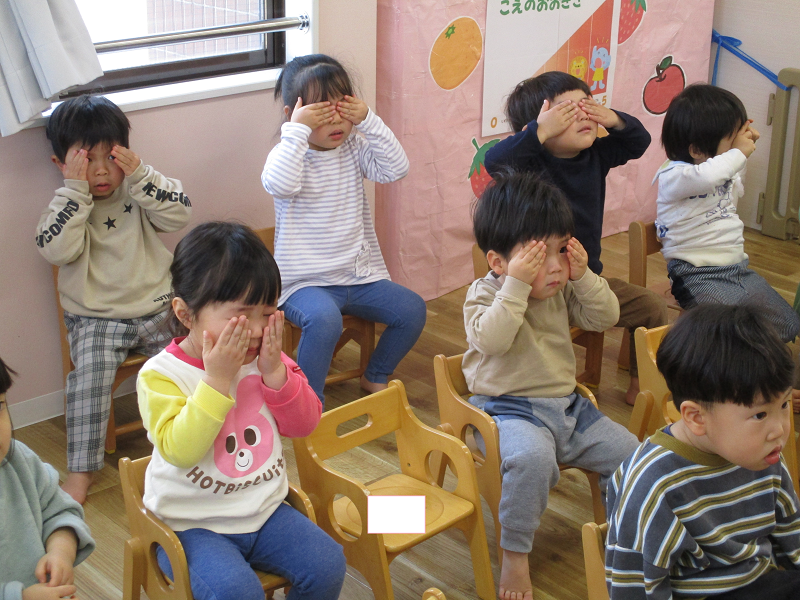 子どもたちから「鬼に変身してる!」「豚になっている!」「ネズミになっちゃった!」と大いに盛り上がりました。