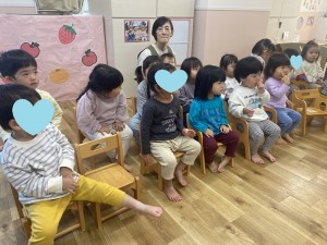 「セミが鳴く暑ーい夏だと思うお友だち?」と聞くと、ジーっと黙る子ども達。